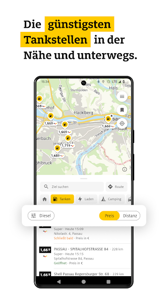 Obtenha preços atuais para gasolina, diesel, gás natural/CNG e autogas/GLP em sua área e salve seus postos de gasolina favoritos. Filtre os operadores e os postos de gasolina do programa Adac Advantage.