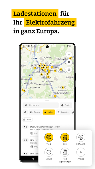 Com relatórios de tráfego em tempo real e estações de carregamento em toda a Europa, você está sempre bem informado. Salvar rotas e favoritos entre dispositivos com o login do ADAC e se beneficiar de vantagens exclusivas com o cartão Digital ADAC Club. O aplicativo é perfeitamente integrado ao seu veículo via Android Auto.